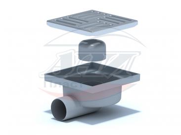 Трап горизонтальный нерегулируемый с выпуском 50мм, с нержавеющей решеткой 150*150