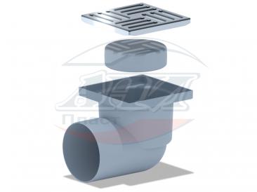Трап горизонтальный нерегулируемый с выпуском 110мм, с нержавеющей решеткой 150*150 сухой