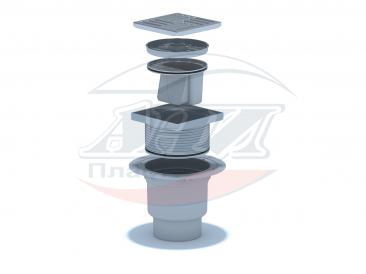 Трап вертикальный регулируемый с выпуском 110мм, с нержавеющей решеткой 150*150 сухой