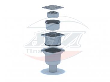 Трап вертикальный регулируемый с выпуском 50мм, с металлической решеткой 100*100 сухой