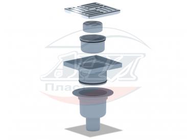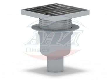Трап вертикальный регулируемый с выпуском 50мм, с нержавеющей решеткой 150*150 сухой