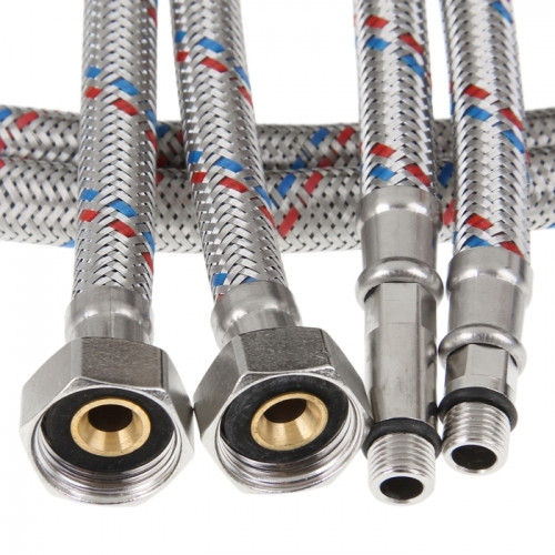 Данная подводка предназначена для установки смесителей. С её помощью вы подключите воду к оборудованию, стоящему на отдалённом расстоянии от труб. Модель представляет собой шланг из экологически чистого сырья, обёрнутый прочной оплёткой из нержавеющей стали. Такое сочетание материалов гарантирует долгий срок службы.