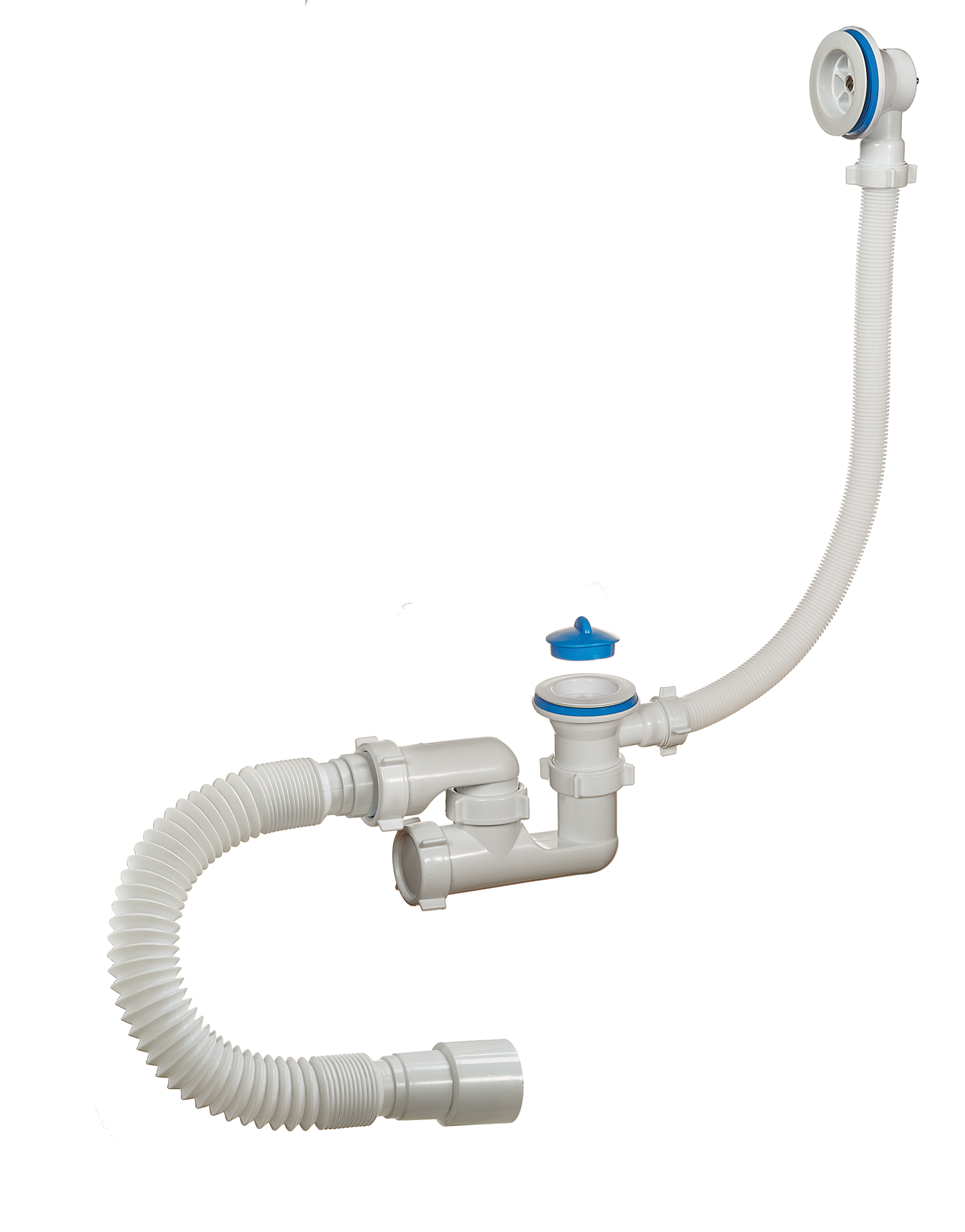 Сифон 1 1/2"х40, с переливом и пластиковыми решетками, для ванн и глубоких душевых поддонов. Конструкция сифона позволяет прочищать сифон, не демонтируя. В комплекте пробка. Отвод в канализацию гибкая труба 40 – 40/50.
