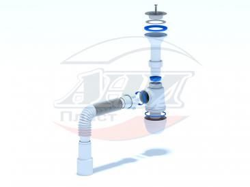 Сифон для кухонной мойки с диаметром сливного отверстия 50мм, бутылочного типа. С литым выпуском и нержавеющей решеткой, для подключения к канализации комплектуется гибкой трубой 40*40/50мм