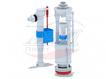 Набор для бачка унитаза. Наливной механизм с боковой подводкой и пластиковой резьбой диаметром 1/2. Сливной механизм хромированная кнопка с одним режимом слива