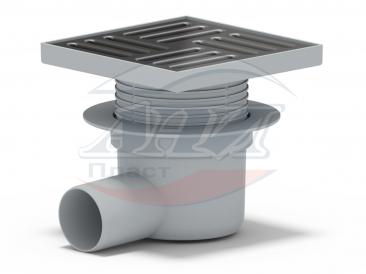 Трап горизонтальный регулируемый с выпуском 50, с нержавеющей решеткой 150*150 сухой