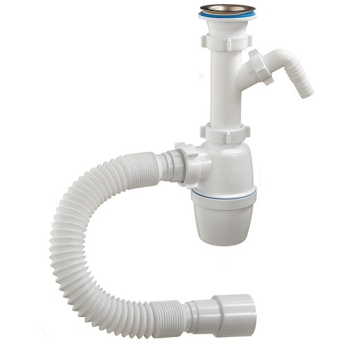 Универсальный сифон ORIO А-40059 подходят для кухонных моек и умывальников без перелива. Эта модель также подходит, если у Вас на кухне стоит стиральная или посудомоечная машина, т.к. конструкцией предусмотрен дополнительный отвод воды.