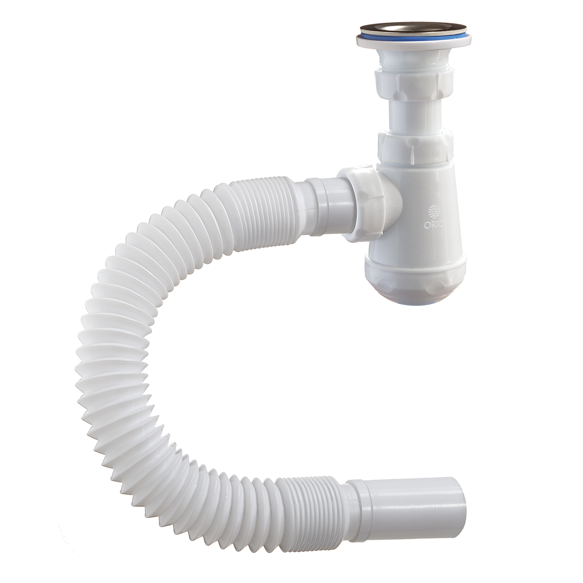 Сифон с мини корпусом и отстойником, с выпуском с нержавеющей чашкой д.63мм, для маленьких и угловых умывальников. Идеален в ограниченных пространствах под тумбочками. Отвод в канализацию гибкая труба 32-32.