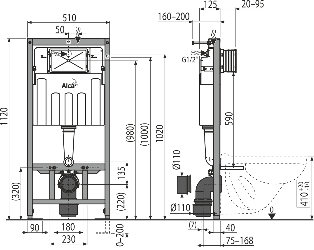Для установки подвесного унитаза с интервалом крепления 180 мм или 230 мм